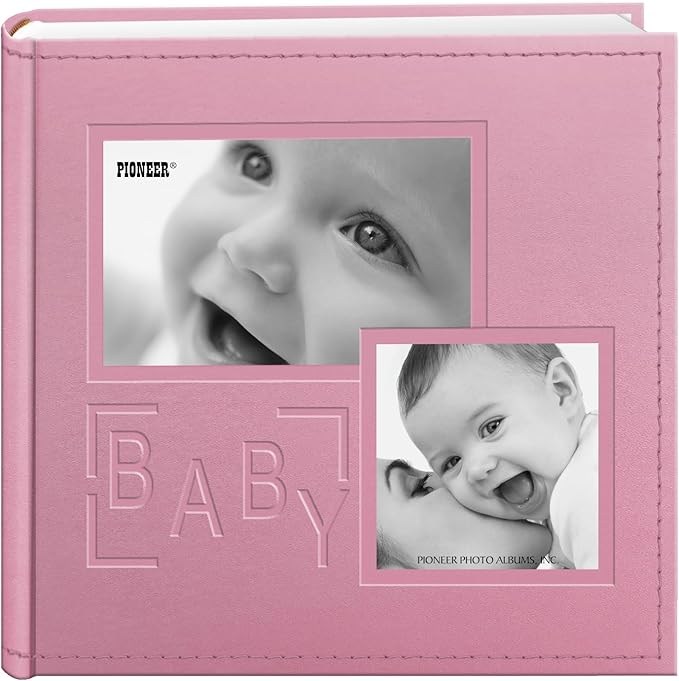 Guarda los momentos más dulces y valiosos del crecimiento de tu bebé en este elegante álbum de Pioneer Photo Albums. Diseñado con un acabado premium en cuero sintético rosa y un detalle grabado de "Baby", es el regalo perfecto para baby showers o para comenzar el archivo familiar.